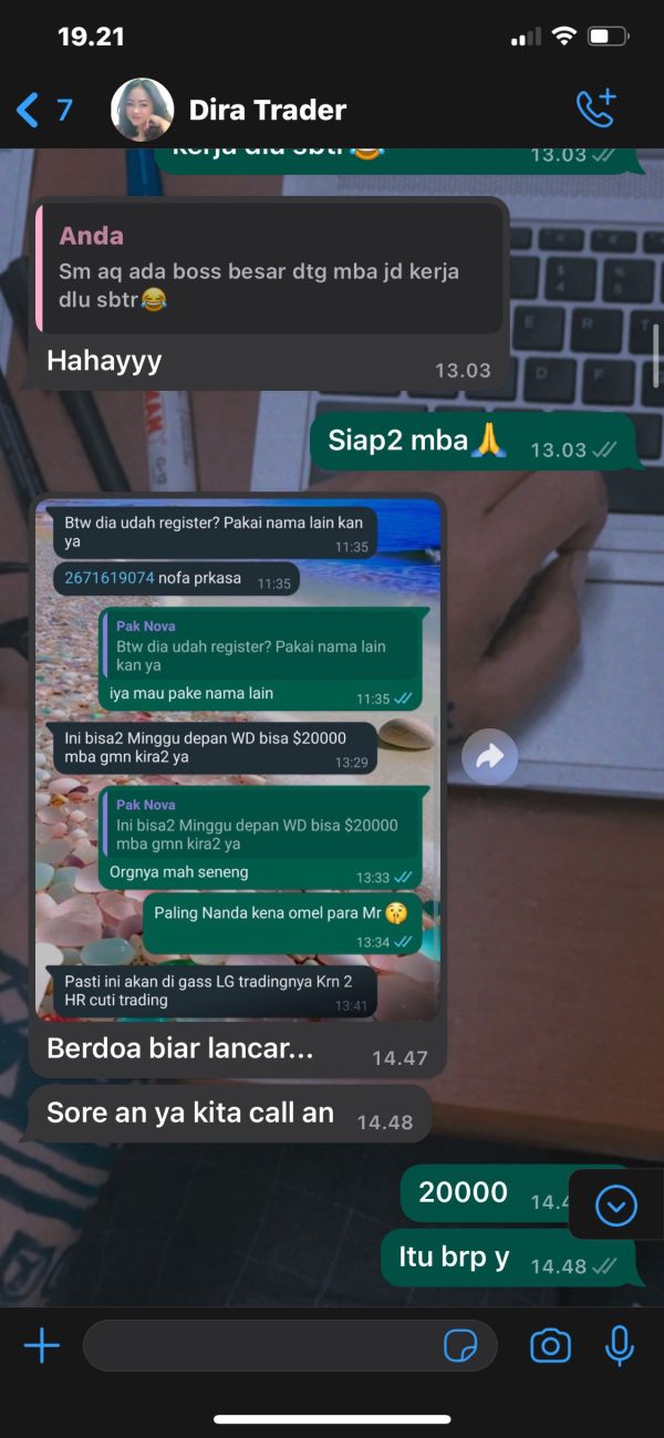 di ajak bergabung dengan mengunakan nama akun lain, di imingi2 profit dengan cara copy trading dari trader bayaran disuruh transfer ke rekening broker untuk bayar sistem master, dan rekening pialang.. dibiarkan akun saya sampai loss dengan alasan sistem nya error , tidak di ajari wd krn menghalang nasabah menarik dananya kembali , setelah 2 bulan tidak dihiraukan lagi sm broker , dimainkan akun saya sampai loss dengan alasan pasar jelek agar para broker ini mendapat komisi dari pialang