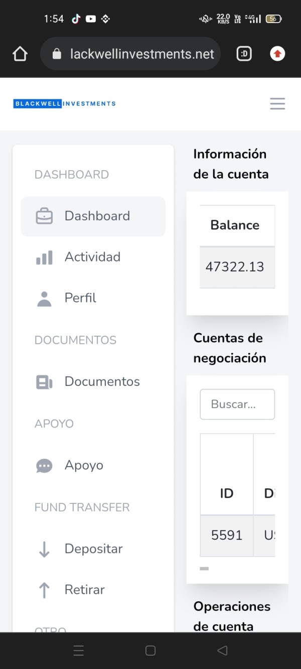 realice inversión con trading.blackwellinvestments, una vez tenía una supuesta ganancia de 60.800 me hicieron pagar unos supuestos impuestos y un certificado de broker y jamás me llegó el retiro el los retiros deje un saldo de capital y eso llegó a un rendimiento de otros 50.000 dólares y también me hicieron cancelar otro impuesto, Ara un to total de pagos y inversión cercanos a los 8.000 dólares, de los cuales no he recibido y la inversión ni los supuestos impuestos, y el supuesto certificación, la señora Laura Hernández y otros dos asesores lo que hicieron fue desconectarse y no responden pr los dineros antes descrito. necesito que me dé las instrucciones para recuperar los dineros invertidos y lo de los impuestos ya cancelados.