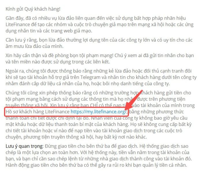 Sàn LiteForex lợi dụng sự nhẹ dạ của nhà đầu tư để chiếm đoạt tài sản, hoạt động trái phép và gây ảnh hưởng tiêu cực đến môi trường đầu tư trong nước. Pháp luật Việt Nam hiện không cho phép mở sàn giao dịch ngoại hối, nhưng các môi giới của LiteForex vẫn rầm rộ quảng cáo rằng đây là sàn quốc tế uy tín, liên kết với các nền tảng tiền điện tử lớn, cam kết lợi nhuận 15–30% mỗi tháng và còn khoe có văn phòng, đội ngũ tại Việt Nam. Thực tế, tất cả chỉ là chiêu trò lừa đảo, chẳng ai từng gặp họ ngoài đời. Tôi từng làm sale cho sàn này nên hiểu rõ: LiteForex phó mặc hoàn toàn cho IB, rũ bỏ trách nhiệm khi có vấn đề.