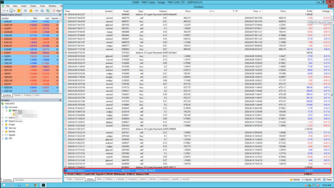 Trading Account Number: 23469 I am a client currently trading on the YWO platform. During my forex trading activities, I have executed all trades in full compliance with the platform’s rules and regulations. However, on April 17, 2024, I discovered that the platform had unilaterally removed profits from my trading account in the amount of $4,058.55, without any clear notification or reasonable explanation. All of my trades were conducted legitimately, without any form of fraud or violation of the terms and conditions. The platform’s unilateral adjustment of my account balance without providing concrete evidence is a lack of transparency and has seriously affected my rights and interests. If this issue is not resolved satisfactorily, I will: File a complaint with the relevant financial regulatory authorities; Publicly disclose this matter to protect my legitimate rights and interests.