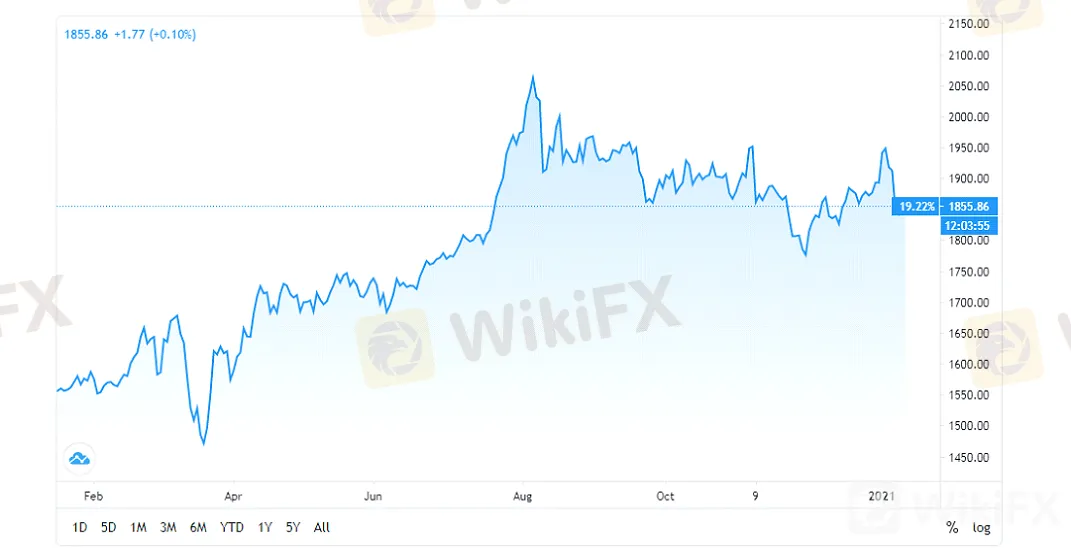 2021年の一週目、金の下げ幅は2.5%超になり、二週目はアメリカの非農業部門雇用者数の発表の後、金の価格は1900ドルを破り、100ドル超の値下げでした。