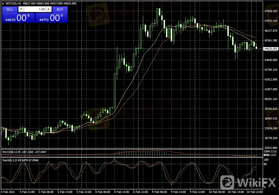 2021年2月11日日本時間午前10:00、BitCoinの価格は44,305ドル(約463万日本円)周辺変動しています。