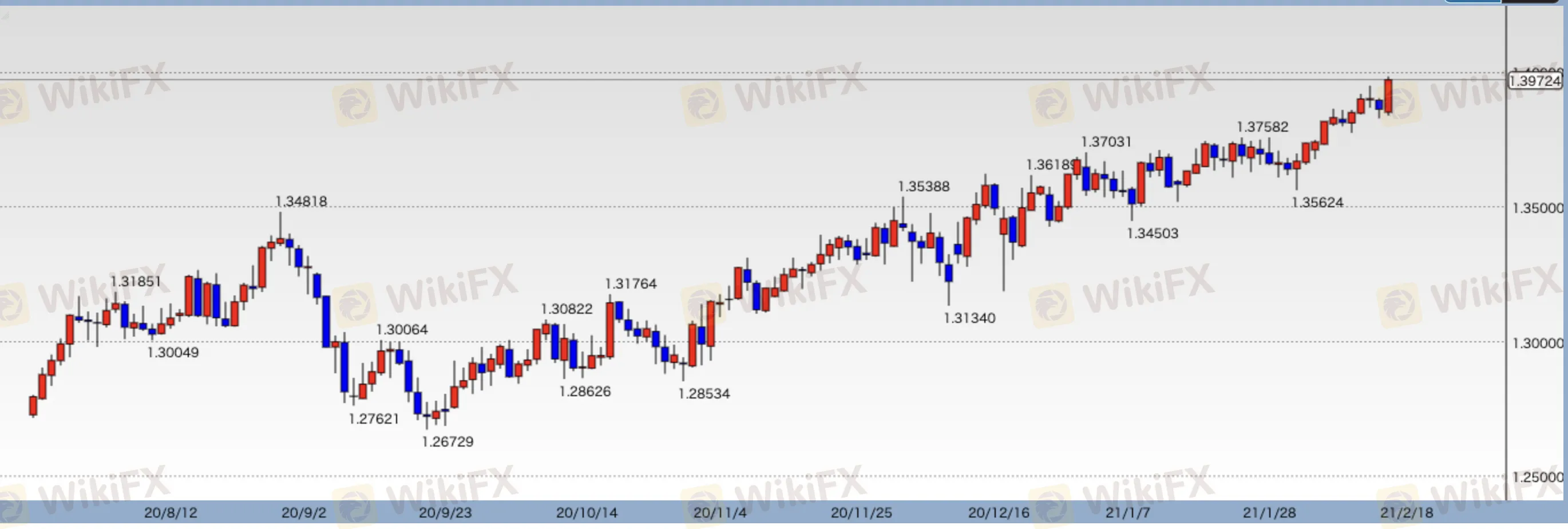 WikiFXでも分析しましたが、ドル現時点での下落傾向は止まらず、2021年ポンド/ドルペアの動きがずっと「ジェットコースター」の様に動いています。アメリカと欧州の経済、及び各国通貨が長期的に不景気と考えると、ポンド/ドルペアの波動は続くでしょう。