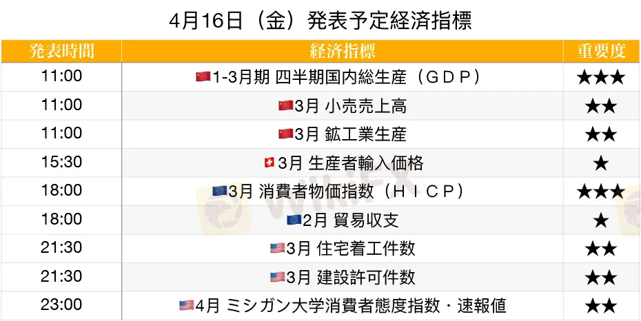 概要:【経済指標】4月16日(金)発表予定経済指標