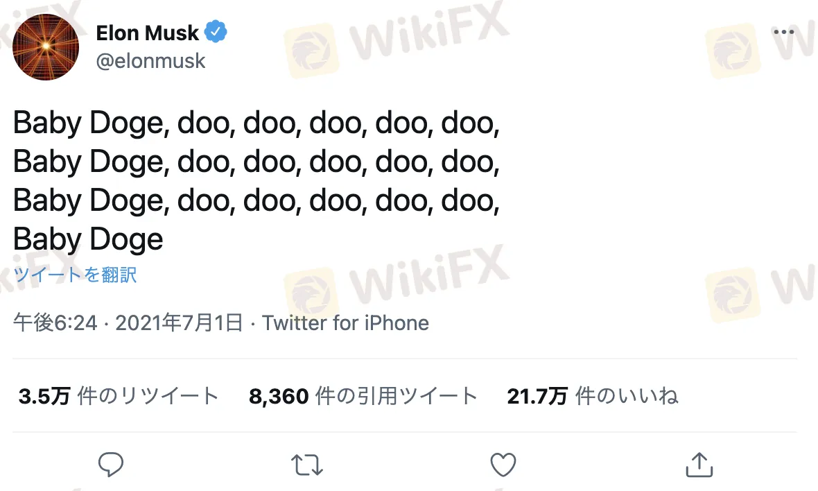 概要:「Baby Doge」と呼ばれるコインプロジェクトは、過去24時間で大幅上昇し、アメリカ自動車メーカーのテスラのCEOであるイーロン・マスク氏がこの暗号資産についてツイートした後はさらに上昇。