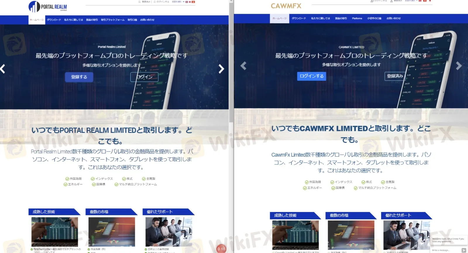 Portal RealmもCawmFxも今現在、真相公開の投稿はなかった。ライセンス情報も他の会社名となっているため、真相はわからない。2者とも日本語のウェブサイトを掲載しているため、日本でも集客の可能性が多きい。リスクの高い業者であるため、使わないでください。