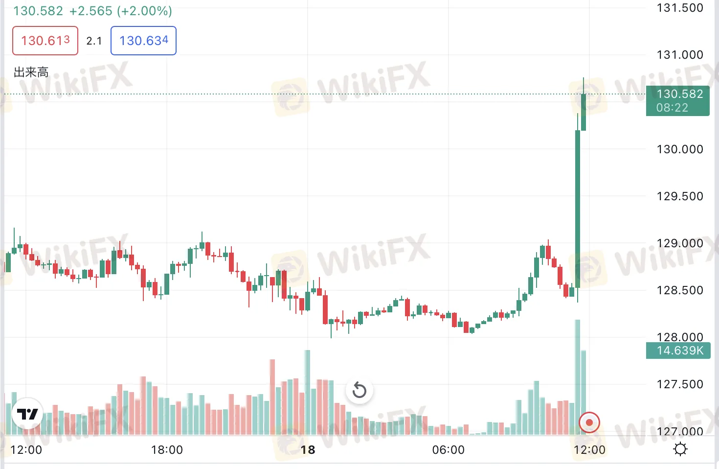 日銀の発表後、ドル円が高騰、記事作成時点130円台までに上昇中、日中上昇幅が2%に達した。
