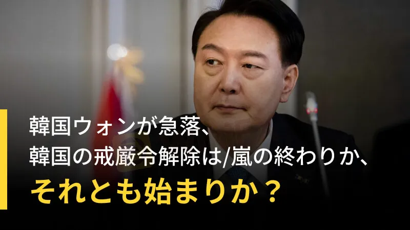 12月3日、韓国の尹錫悦(ユン・ソンニョル)大統領は、野党が「国会を脅迫し、国家を混乱させた」として戒厳令を発令しましたが、その6時間後に戒厳令は解除されました。果たして、これは「嵐の終息」なのか、それとも「新たな始まり」なのか?本記事では、過去の韓国における戒厳令の歴史をもとに、今回の出来事が韓国ウォンに与える影響を分析します。
