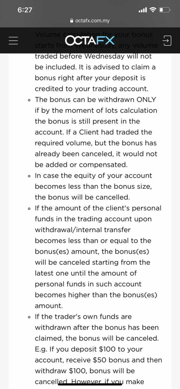 As you can see on the first picture, the broker offers deposit bonus that supports margin, meaning that if the equity falls below the balance amount, the bonus will support the remaining equity. But after several trades, I have acquired some faulty losses. I read their Terms & Conditions on the second picture and it says that if the equity becomes less than the bonus size, they will cancel the bonus. This is wrong. I will take action on this and report to CYSEC for further investigations.