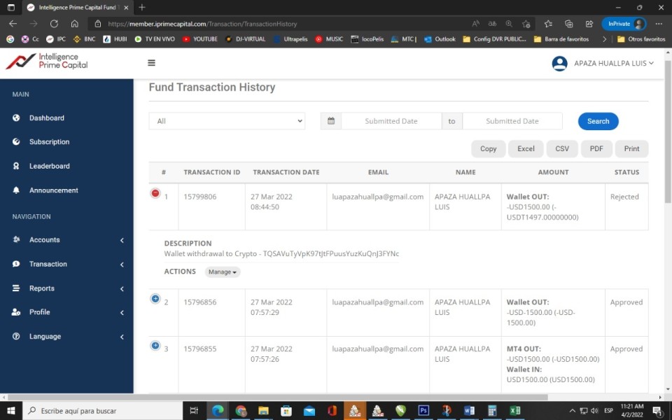 On March 27, 2022, I requested a withdrawal of 80% of my capital, it was rejected and to date the return and walle IPC still do not appear nor are the representatives mentioned, I have sent an email which was never answered. The other thing is that it does not pay profits of the 20% that still operates in mt4. point 3 they passed our or balance or the 20% mentioned to another bot named MASTER C and will have retained the money for 100 days and would pay weekly earnings according to the norm, which they are not complying with so little. There are 3 faults that thousands of people owe us a solution and explanation. thank you