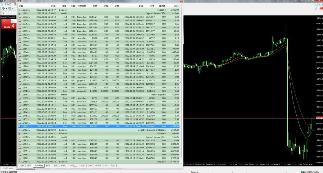 我在10.12号交易是遭遇平台滑点,本来赚400美金,后来直接因为滑点亏损2000美金,导致账户穿仓,我在10.13号又入金500美金交易,因为行情大盈利了20000美金,但是平台却说盈利无效,直接给扣除了,盈利给扣除,亏损却不给扣除,有图有真相,我在axim汇胜一共入了2500美金,全部亏损完,血本无归,希望天眼能维护我的权益,曝光这个黑平台,归还我的本金和盈利