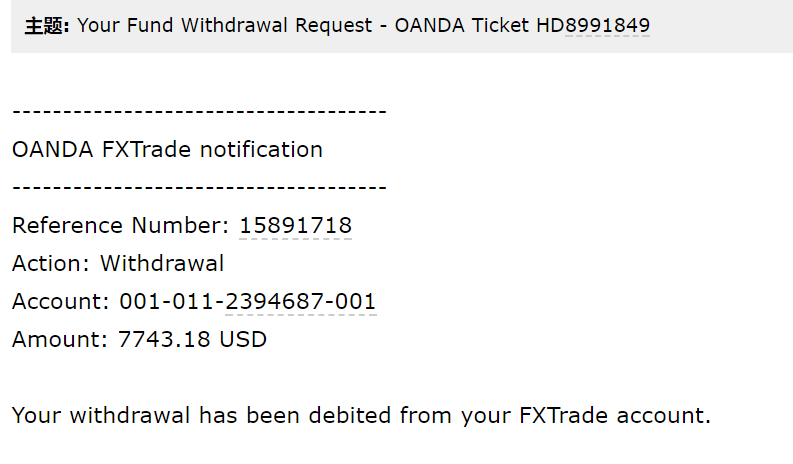OANDA平台无法出金