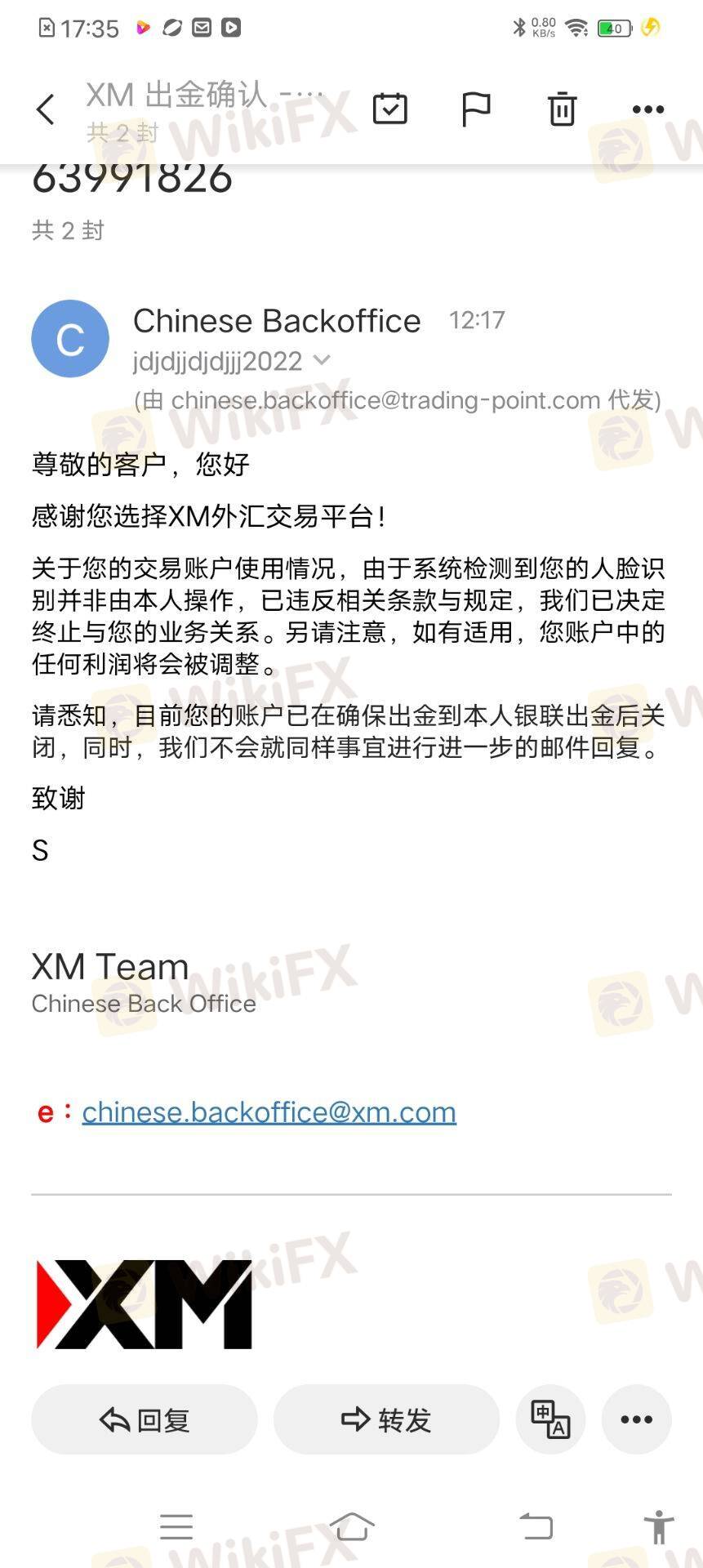 首先感谢您选择XM和对我们的支持! 关于您账户 63991826 的投诉,我们第一时间进行了核实调查,经多次仔细核实沟通后,非常遗憾对于您账户问题确实无法更改相关决定,需请您以2025年9月22日发送的重要通知邮件内容为准。 最后再次感谢您对XM的理解和支持!