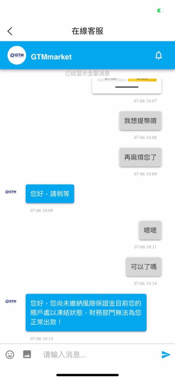GTM惡劣的黑平台 凍結資產
