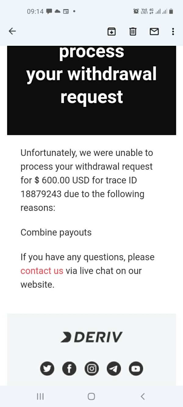 once they saw that you make good profit they start story when you withdraw they prosses the money the send you the email with says Declined I have now 5 day trying to withdraw even now when I try to chart with them they they change story or to freeze you account I have 3 year losing in this broker now becouse I'm making profit they don't prosses the payment before they was possessing because it was small withdrawal