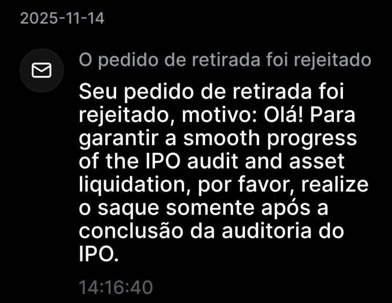 Não liberam saques, inventaram IPO e agora um Cartão que vc tem que depositar 20% da sua banca para ativar! Golpe!