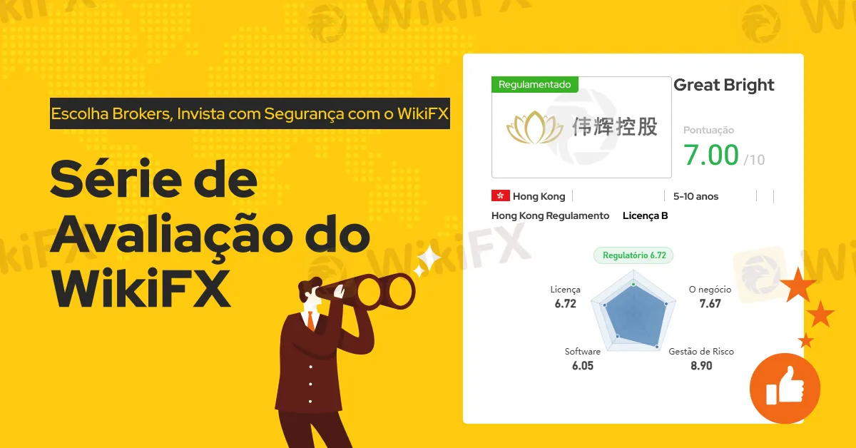 A WikiFX atribui à Great Bright uma pontuação de 7.00/10, indicando risco potencial médio, mas alerta que a corretora não possui um software de negociação próprio, o que pode limitar sua funcionalidade. A ausência de regulamentação por órgãos internacionais mais amplos pode ser uma preocupação para traders que buscam maior proteção do capital, especialmente em comparação com corretoras como Tickmill ou Exness, que operam sob múltiplas jurisdições de alto padrão.