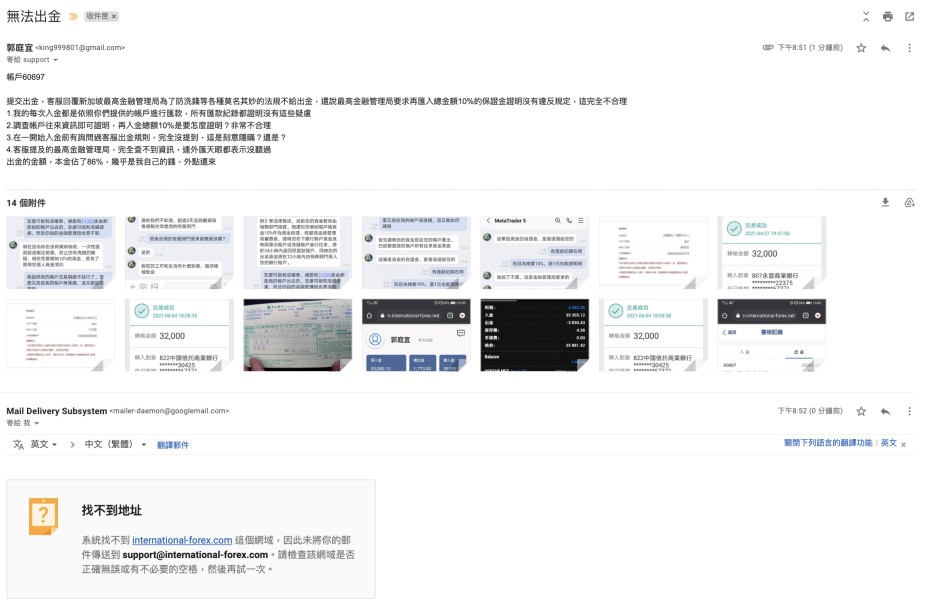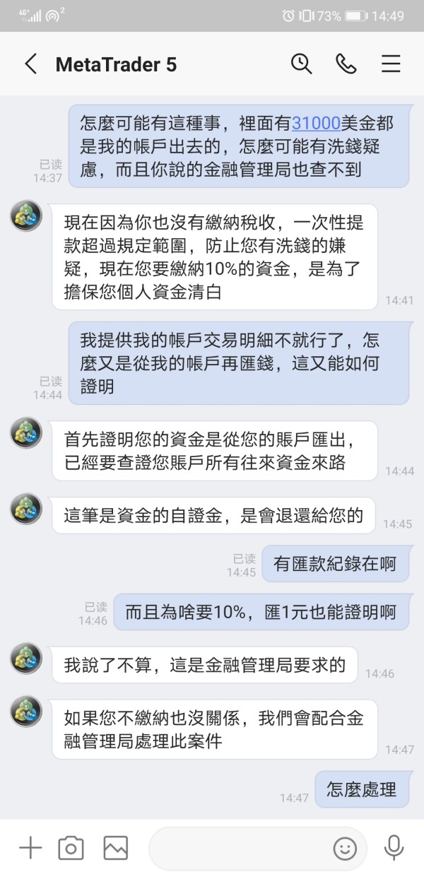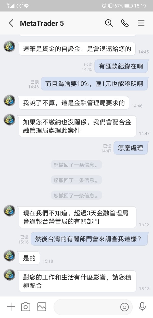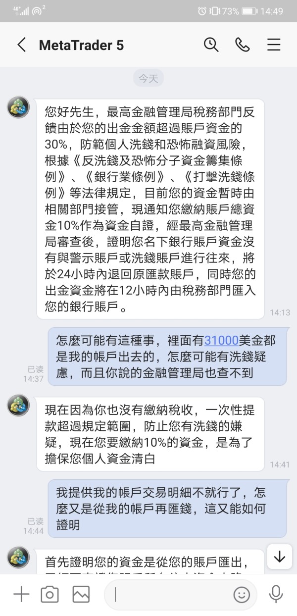不給出金,還謊稱新加坡金融管理局為了防止洗錢要求再入金帳戶總額10%當作保證金,不然扣留資金調查,根本詐騙 客服信箱假的,監管認證假的,有什麼是真的,不要再騙了