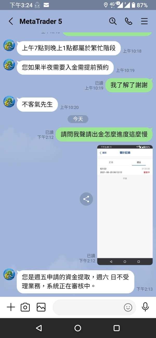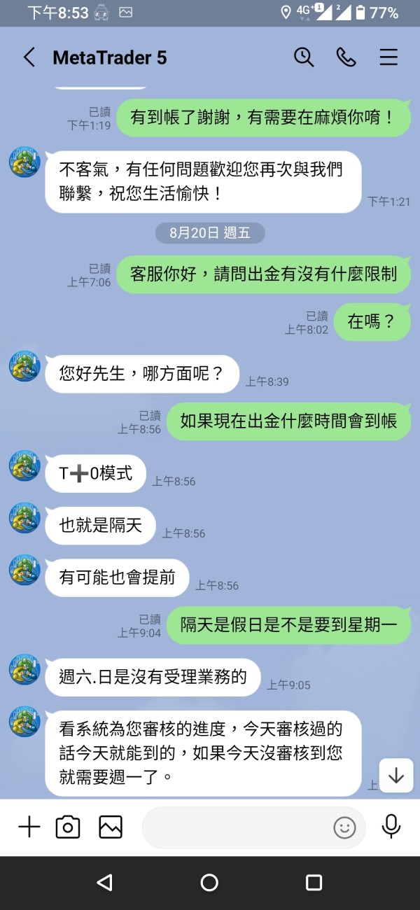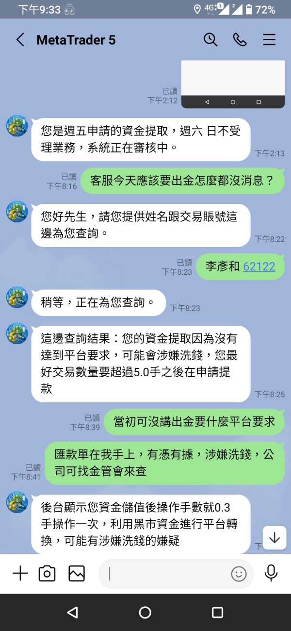 我放了2000美金入金有獲利想加本金操作,想說測試看看出金會不會有問題結果時間到沒出金,就找理由不出金