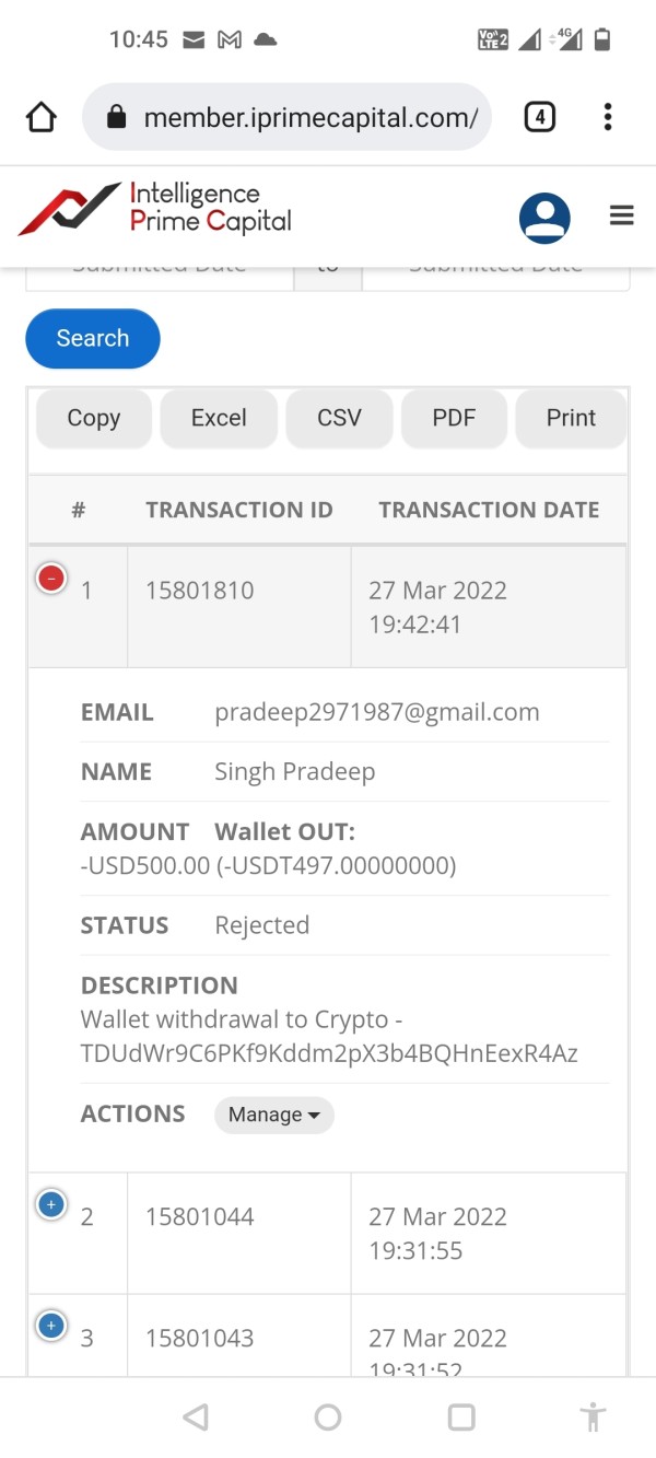 unable withdrawal