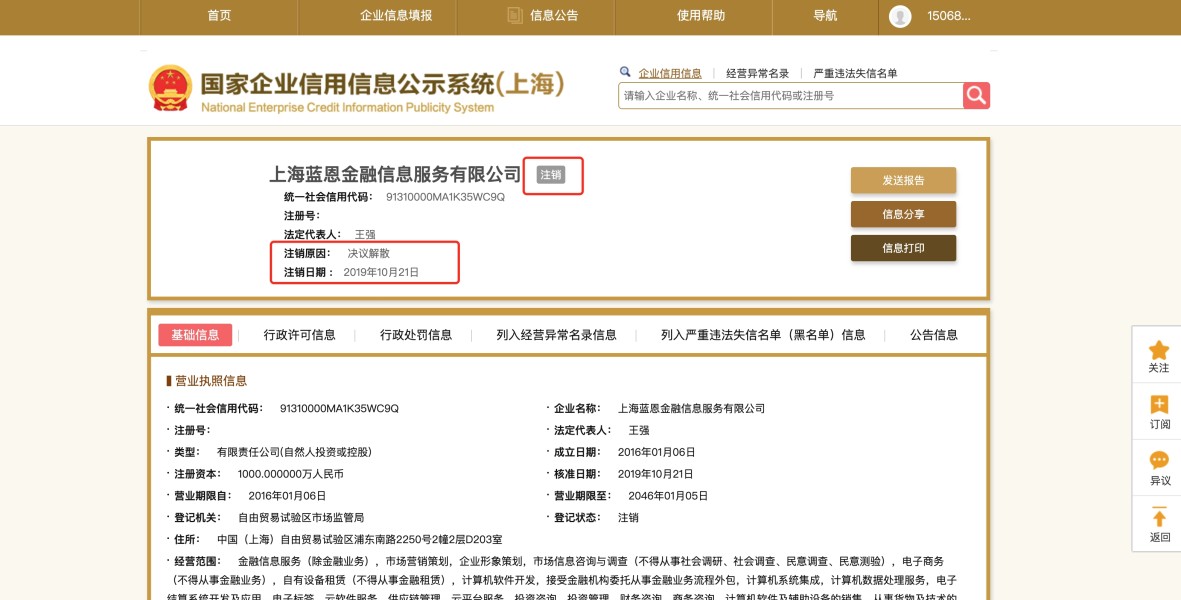 狮子国际登记的公司,经查实早在2019年就注销了