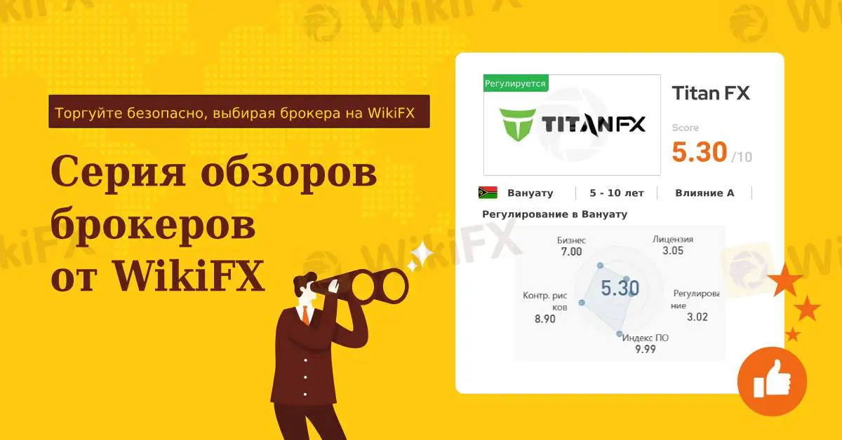 Рейтинг брокера Titan FX на WikiFX составляет 5.30 из 10. Этот рейтинг основан на отзывах клиентов, обзорах экспертов и других факторах. Рейтинг выше 5,0 указывает на то, что брокер имеет хорошее качество услуг.