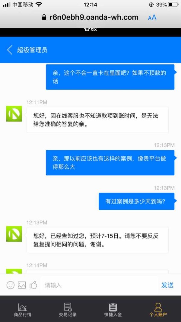 开始出金的时候说银行卡错误,要交保证金,交了保证金,又说信用分不足百分百,提升了信用分,提现后二十四小时不到账,问在线客服说是转账通道卡款,要等7-15内到账,今天第十六天了还是不到账,在线客服说不确定到账时间,叫耐心等待(),我是不是碰到黑平台了