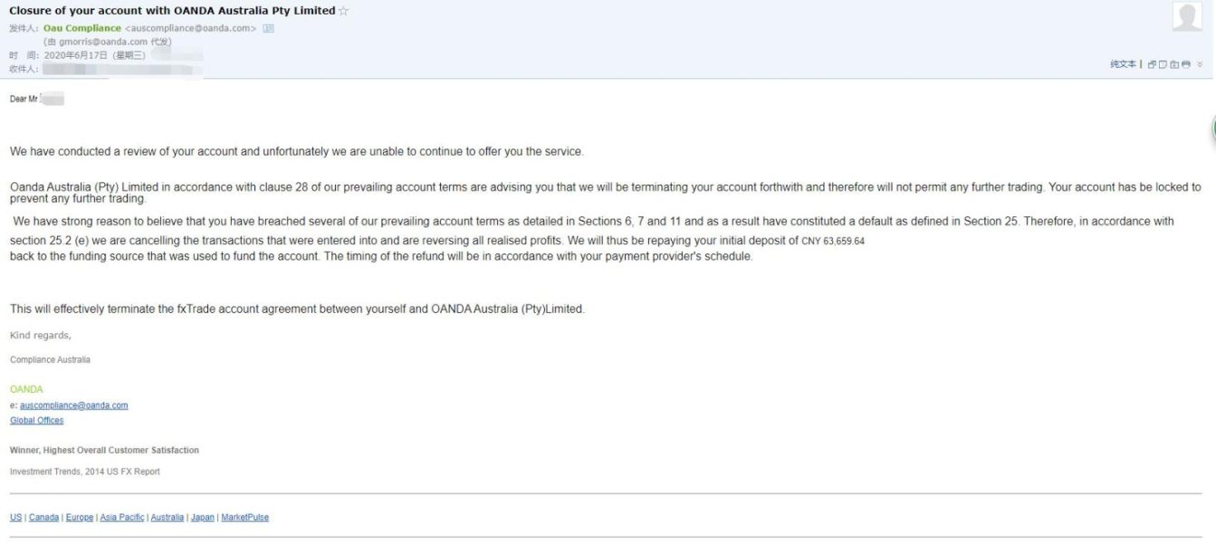 OANDA ห้ามบัญชีของฉัน