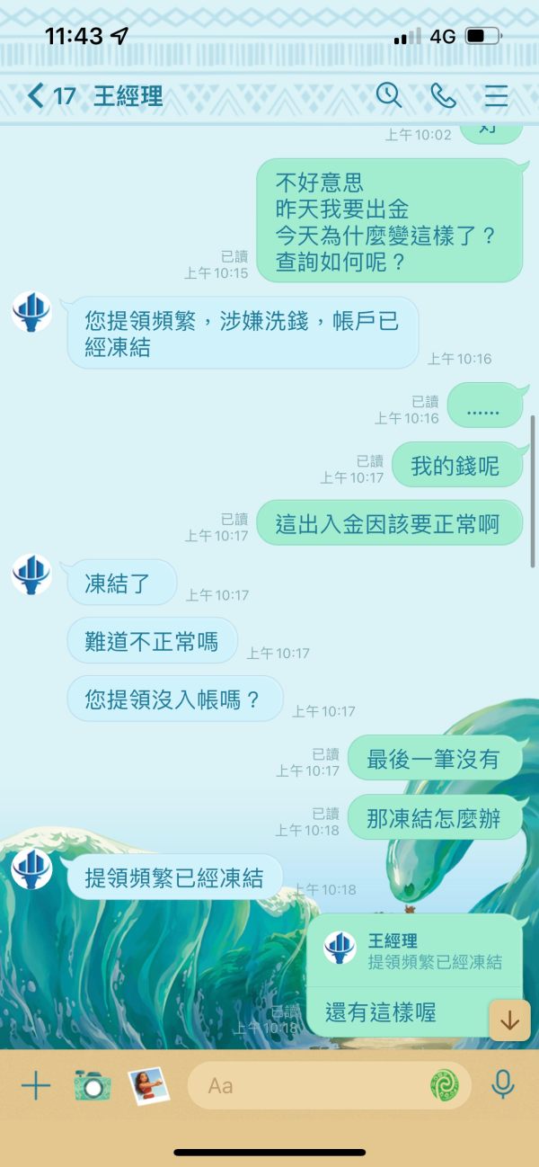 出金11000美金直接封鎖說出金頻繁 要求繳納20保證金或者等一個月 最後等了一個月要出金5000美金 還要我繳納15%稅金問題說什麼不可以逃稅 最後直接都不讓我出金要我自己想… 一位平台王經理一位助理Fay