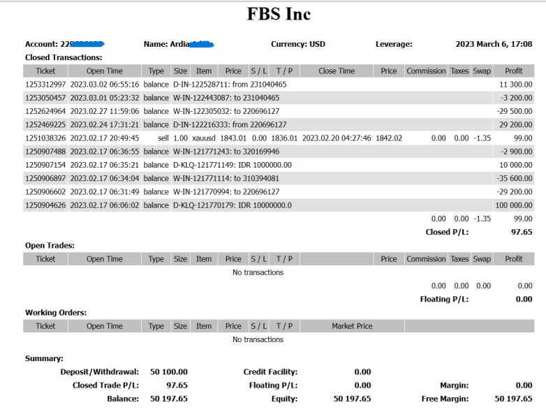 I could not have my withdrawal since the end of Friday 30th December 2022, I have tried a few ways as what has been suggested by the customer services of FBS but I still did not get my money and it came back to the account. The last time I tried to withdraw is in 10th February 2023 but still failed. On 2 March 2023, I want to try to withdraw again but we could not log in to their website and it showed that 'user not found'. Please help, I have $50,000 in my FBS account. Here is the proof of my latest balance in my FBS account from Meta Trader 4. Fortunately, I can still open the MetaTrader and have this evidence. Until now there is no confirmation or response from the customer services of FBS. I have tried to send emails and chat on their websites before my account can not be opened. Today Monday 6th Mar 2023 I tried to log in again but still can not open it and I also already tried to recover the password through our email that registered in FBS but there is an error/bug in the 'repeat new password' so I still could not recover our FBS account now.