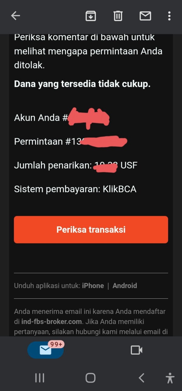 Setelah order dan pending order saya hilang tiba2, sekarang WD penarikan modal saya ditolak dengan alasan saldo tidak mencukupi, padahal saya lihat saldo yg dapat d tarik sdh sesuai seperti syarat FBS sendiri, dan saya sedang tidak ada order maupun pending order.