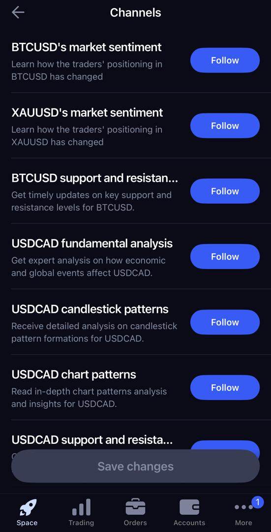 Trading on the octa platform is very easy, most especially because of the spaces... payments too are really easy to complete. There are local payment methods available, so it is even possible to transfer funds with your phone. Using spaces, you can also follow channels that share information about different instruments, just like the image.