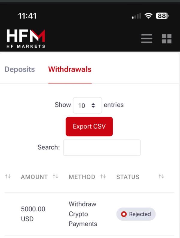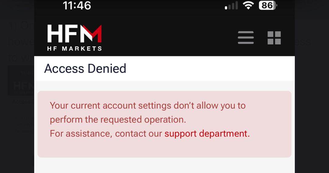 Once you profit with HF Markets (HFM), they'll scam you. They close your MT4 account, reject all withdrawal requests, and lock you out of your client portal. They'll stop at nothing to prevent you from getting your money, making it impossible to withdraw any funds.