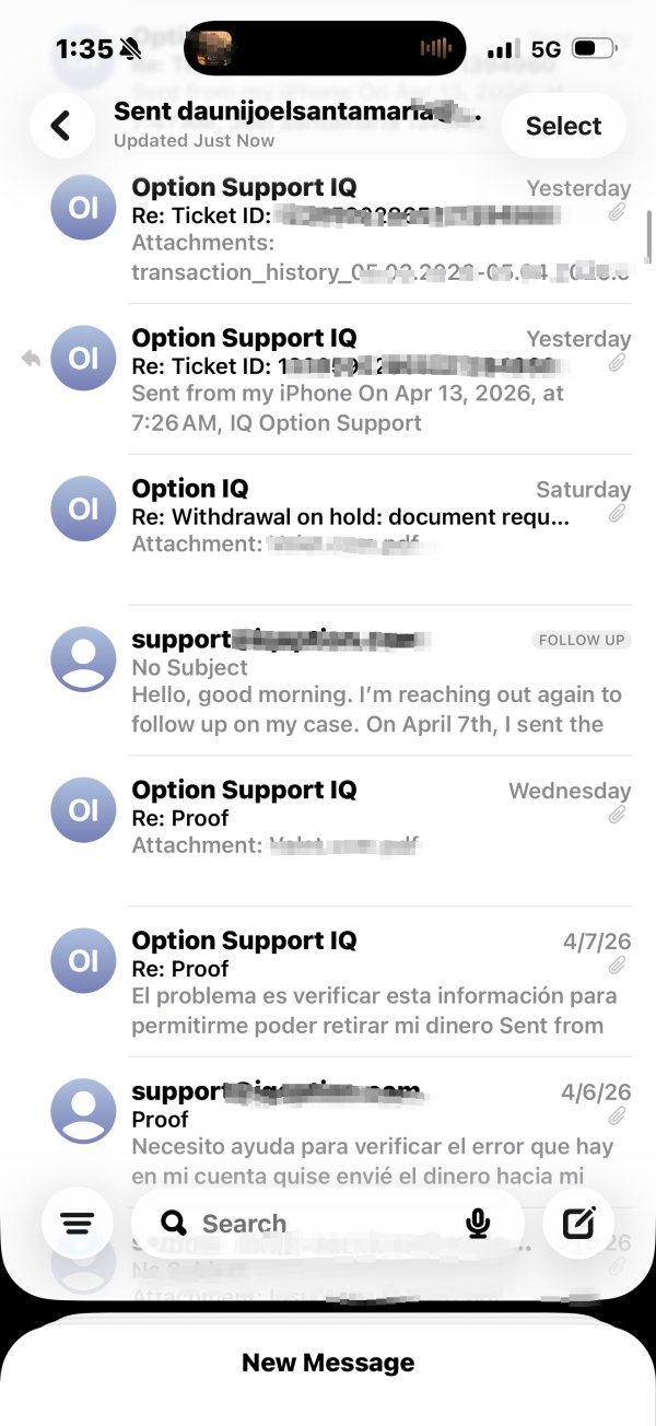 Buenas necesito ayuda de alguien porfavor llevo alrededor de 2 semanas intentando retirar dinero de iq option primero comencé con 1,400 no me dejó he escrito muchas veces pero me responden cosas sin sentido por que todo lo que piden ya lo he enviado previamente y escrito por email , el chat de la aplicación , grupos de telegramas , faceboook y Instagram y nada ha sido resuelto . Necesito ayuda porfavor