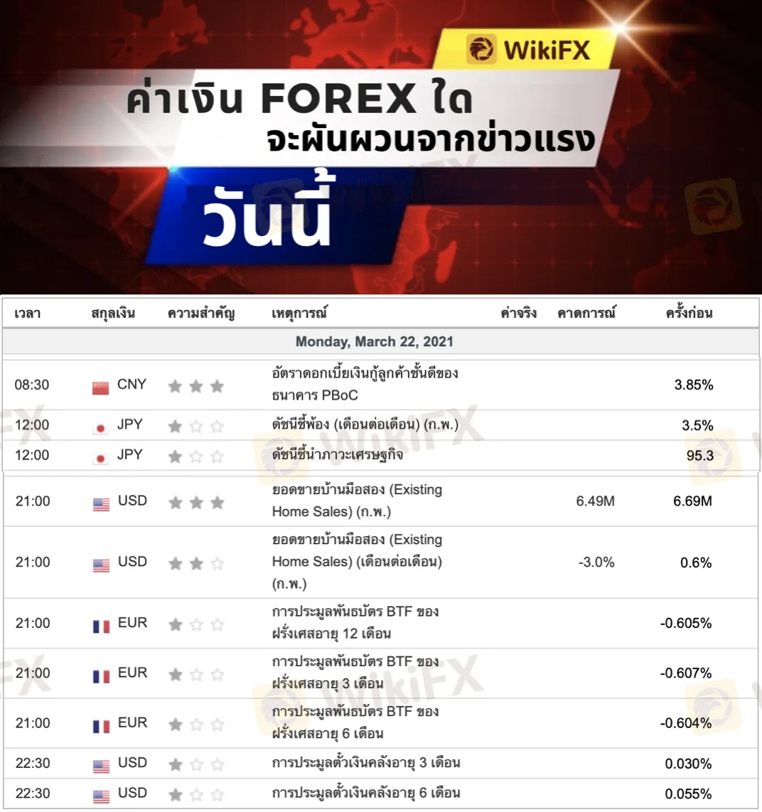 บทคัดย่อ:ค่าเงิน Forex ใดจะโดนกระทบจากข่าววันี้ (22 มีนาคม)