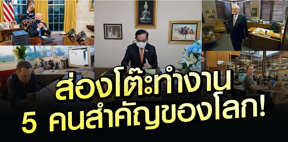 หลังจากภาพโต๊ะทำงานของลุงตู่ถูกปล่อยออกมา ภาพนี้กลายเป็นไวรัลอย่างรวดเร็วเลยจนหลาย ๆ คนเอาไปทำเป็นแบคกราวน์ตอนประชุม WFH กันแล้ว ฮ่า ๆ วันนี้เราจะพาไปดูโต๊ะทำงานของคนดังของโลกคนอื่น ๆ กันบ้างว่าคนที่ประสบความสำเร็จอย่างพวกเขามีโต๊ะทำงานยังไงกัน?