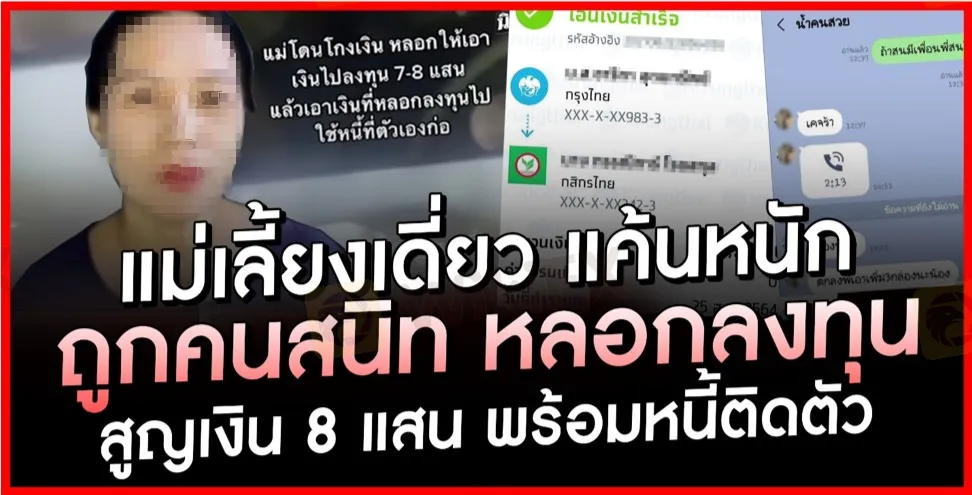 การหลอกลวงครั้งนี้ ทำให้คุณเจี๊ยบแทบหมดตัว ทั้งทองคำที่จำนำ แถมยังมีหนี้ติดตัวกว่า 3.6 แสนบาทจากการลงทุนครั้งนี้ โดยสุดท้ายกล่าวว่า “ให้สังคมประณามเค้า ลงโทษเค้า ว่าสิ่งที่เค้าทำ ทำให้ตัวพี่และครอบครัวเดือดร้อน เค้าเป็นเพื่อนเรา แล้วเค้าก็มีลูก แต่ทำไมมากล้าทำกับเรา ทั้ง ๆ ที่เราก็เป็นแม่เลี้ยงเดี่ยว”