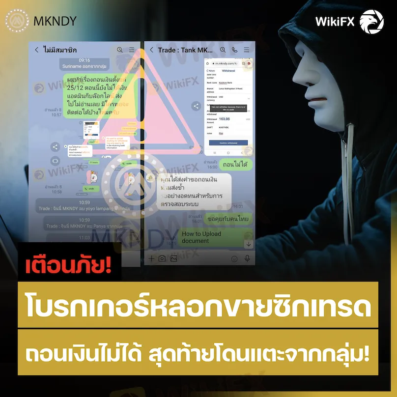 โบรกเกอร์รายนี้ ใช้ชื่อว่า ‘โบรกเกอร์ MKNDY Ltd’ มีคนไทยเล่าในเว็บบอร์ด ‘การเปิดเผย’ ในแอป WikiFX ว่า “ถอนไม่ได้ โบรกเกอร์รายนี้ให้บริการซื้อขายจากสัญญาณ (100 เราได้รับ 1 สัญญาณ หาก 1,000 จะได้รับมากกว่า 1 สัญญาณ) เมื่อคุณได้รับเงินจากสัญญาณ คุณจะถอนไม่ได้ และฝ่ายซัพพอร์ตจะถอนไม่ตอบคุณเลย ระวัง โบรกเกอร์นี้โกง!”