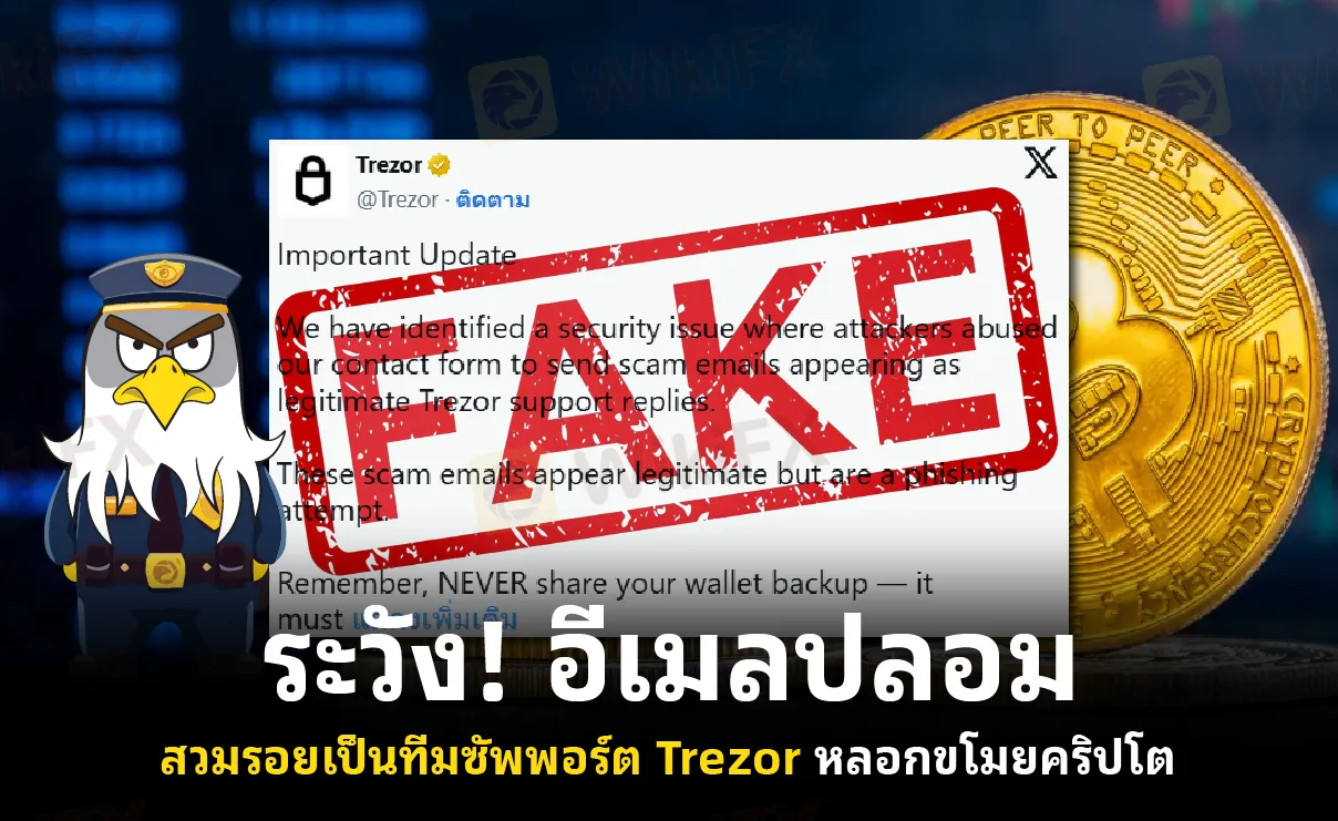 บทคัดย่อ:Trezor เตือนผู้ใช้งานทั่วโลกถึงแคมเปญฟิชชิ่งที่แอบอ้างเป็นทีมซัพพอร์ต เพื่อหลอกขอข้อมูลสำคัญอย่าง seed phrase โดยใช้ฟอร์มติดต่อบนเว็บไซต์หลอกระบบส่งอีเมลอัตโนมัติ Trezor ย้ำว่าไม่มีนโยบายขอข้อมูลสำรองใด ๆ และระบบยังปลอดภัย ขณะเดียวกัน การโจมตีแบบ spear phishing ในวงการคริปโตยังเกิดถี่ขึ้น วิธีป้องกันคือไม่เปิดเผย seed phrase และตรวจสอบแหล่งที่มาของอีเมลทุกครั้ง.