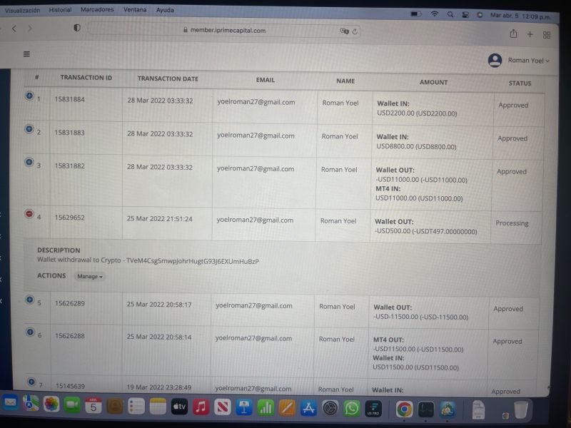 since March 25 I requested a wall of my capital and they never paid it