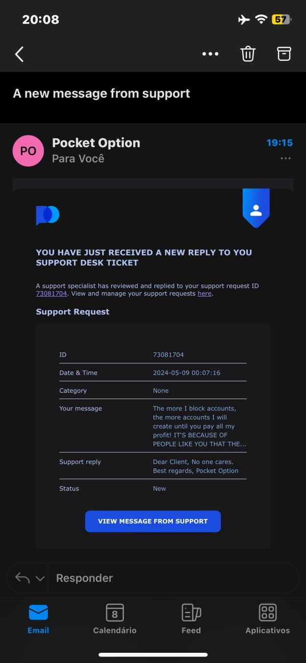 406 DIAS QUE A POCKET RETEU O LUCRO DA MINHA CONTA E A BLOQUEOU APÓS EU INFORMAR AO SUPORTE QUE MEUS SAQUES ESTAVAM SENDO CANCELADOS SEM MEU CONSENTIMENTO, INCIALMENTE ELES DISSERAM QUE JÁ HAVIAM EFETUADO O PAGAMENTO E A CUBOPAY HAVIA RETIDO MEU DINHEIRO, DEPOIS DISSERAM QUE IAM REEMBOLSAR O SALDO , AGORA ESTÃO ALEGANDO QUE USEI OS FUNDOS EM NEGOCIAÇÃO E ZEREI O SALDO , TODAS AS INFORMAÇÕES QUE ELES ESTÃO USANDO SÃO FALSAS E LEVIANAS , ESTÃO COM MEU LUCRO RETIDO E SEGUEM NEGANDO-SE A PAGAR MEU LUCRO NO VALOR DE $6767 usd , ESTOU HÁ 1 ANO NESSA LUTA E ELES FICAM DEBOCHANDO, BLOQUEANDO AS CONTAS QUE CRIO PARA CONTATAR O SUPORTE E O MEU PAGAMENTO MESMO ELES NÃO FAZEM ! ELES AGEM DE MÁ FÉ E DE FORMA FRAUDULENTA NAS CONTAS , SÃO VÁRIOS CLIENTES COM AS MESMAS RECLAMAÇÕES, CONTAS ZERADAS POR ELES E APÓS ISSO BLOQUEADAS SEM NENHUMA JUSTIFICATIVA! EU NÃO VOU ABRIR MÃO DE RECEBER MEU LUCRO !