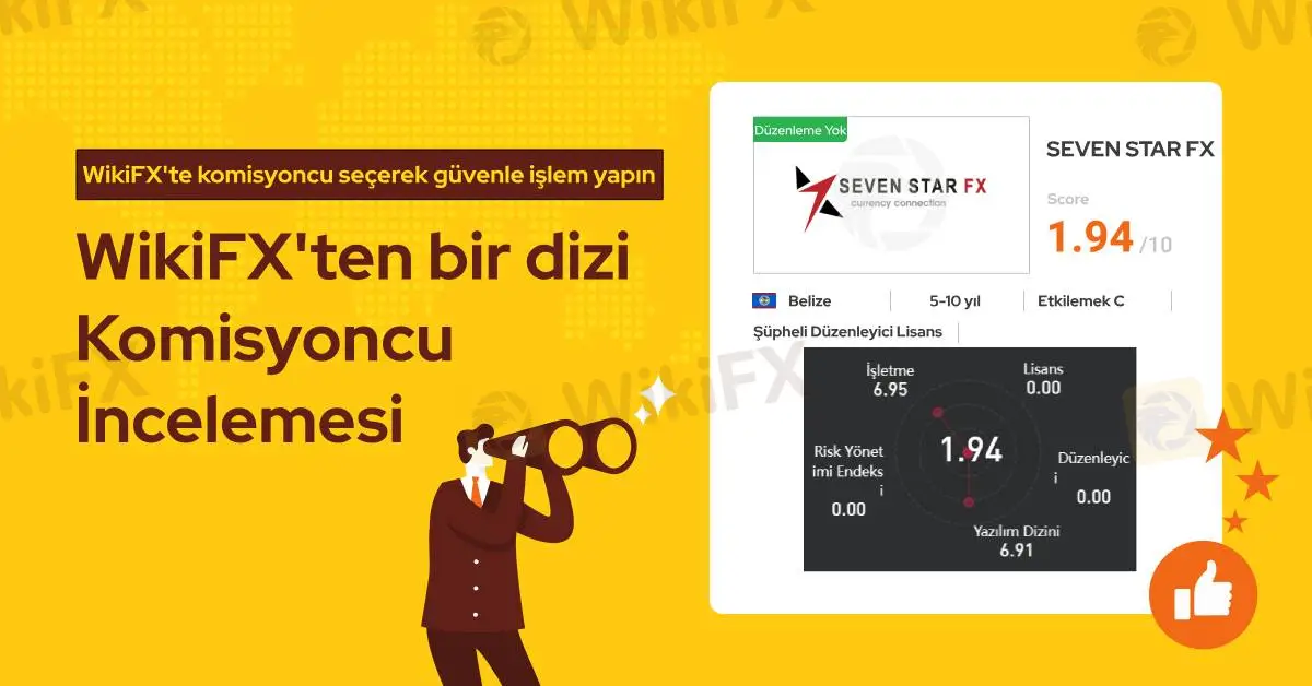 Seven StarFX resmi lisans sahibi bir forex komisyoncusu değildir ve WikiFX araştırmalarına göre bu firmanın lisansı geçerli değildir. Ayrıca bu firmayla ilgili olarak son 3 ayda 21 farklı şikayet WikiFX yetkililerine ulaşmıştır. Bundan dolayı WikiFX bu komisyoncuya 1.94/10 gibi düşük seviye bir puan vermiştir.