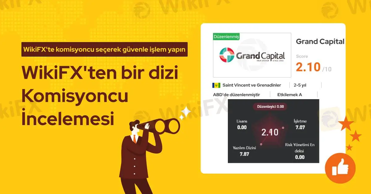 Grand Capital resmi lisans sahibi bir forex komisyoncusu değildir ve WikiFX araştırmalarına göre bu firmanın lisansı geçerli değildir. Ayrıca bu firmayla ilgili olarak son 3 ayda 19 farklı şikayet WikiFX yetkililerine ulaşmıştır. Bundan dolayı WikiFX bu komisyoncuya 2.10/10 gibi düşük seviye bir puan vermiştir.