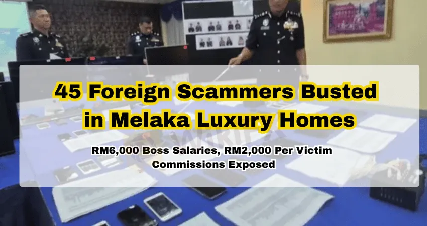A large scale police operation in Melaka has laid bare the structured, corporate-like workings of modern scam syndicates operating within Malaysia, following the arrest of 45 foreign nationals in simultaneous raids on two luxury residential properties in the Taman Kota Bendahari area on April 23.