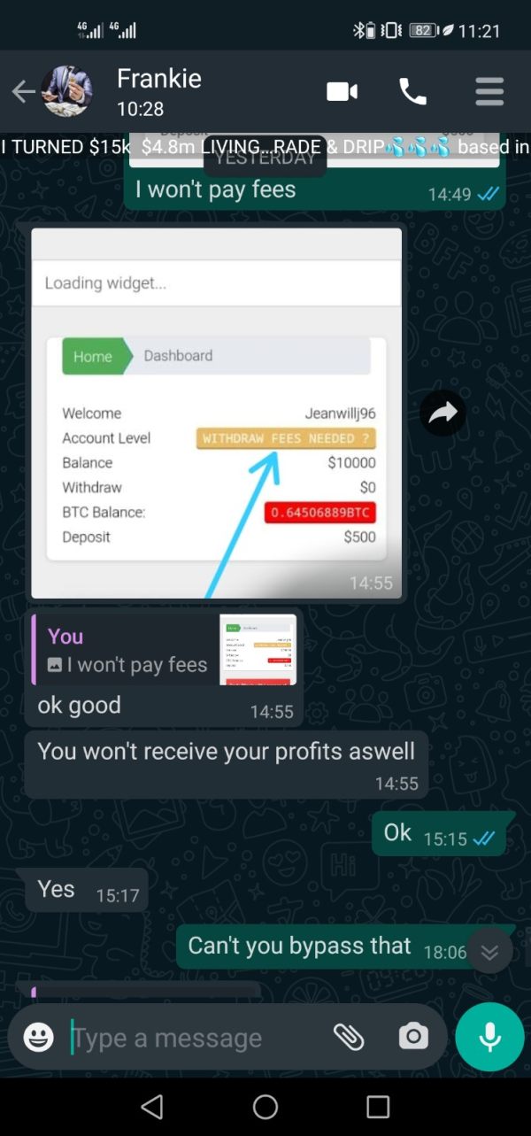 Good day I was contacted by n Frankie Rodriguez on Instagram about a bitcoin investment and I was scammed for more than $9000 in money to a fake Bitcoin Address. The company sites name was Tradersvill24