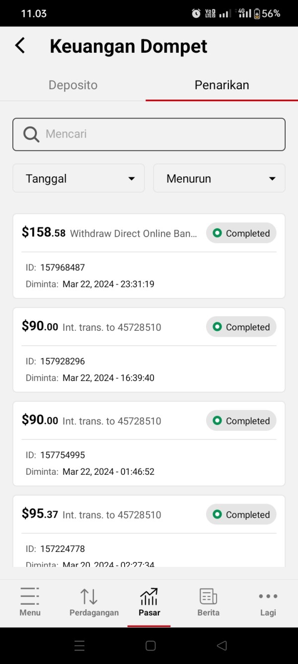 mohon bantuannya agar bisa segera diproses withraw saya dgn id transaksi 157968487