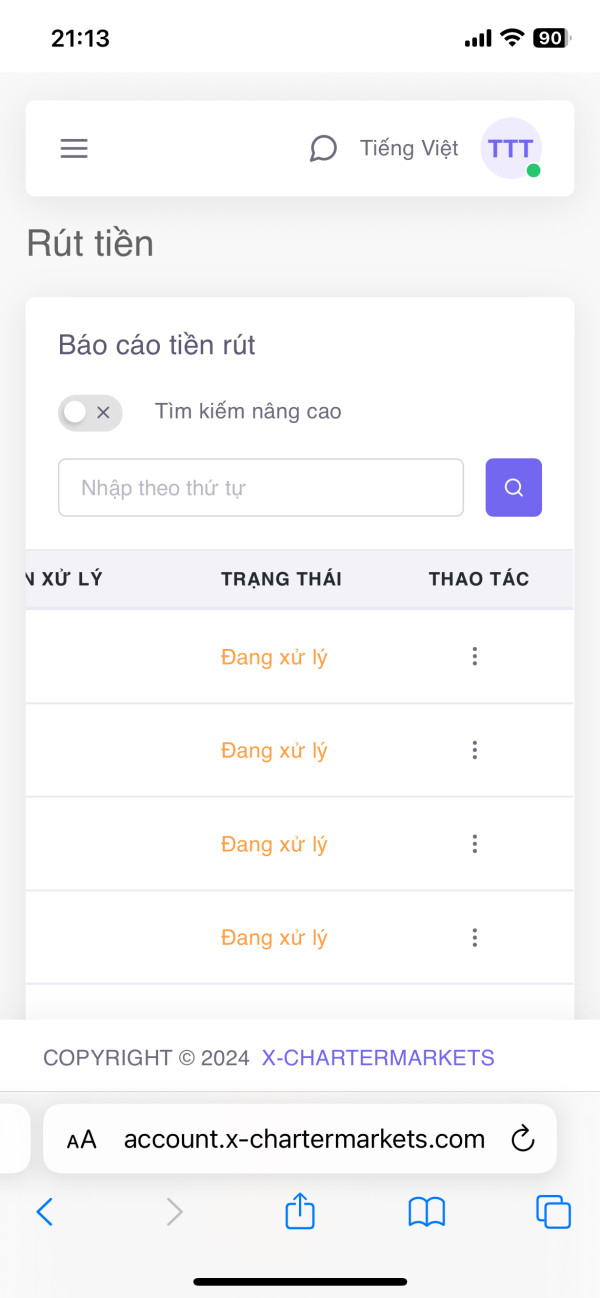 không rút được tiền tại san x chartermarket