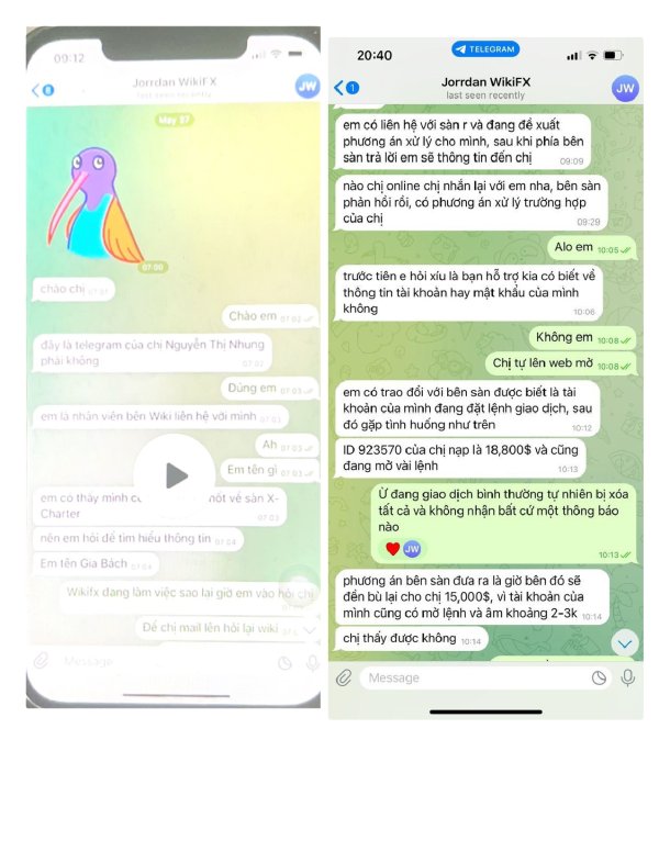 Let me tell a complete story about the criminal practices of the X Charter Broker. Since X Charter Broker contacted me, I had to go through five weeks of this ordeal. They lured me in, promising a great future, and gave me VIP status that included matching my deposits and low fees. They let me withdraw some money to ensure that everything works as it should. After five days of light trading, my account disappeared from their site including the MT5 Platform. My initial deposit was $18,800 with open trades that could be profitable in the two days. Not knowing what to do, I turned to the help of case. Oh boy, was I wrong? After my exposure, agents who introduced themselves unacceptable offers to reinstate my account with only $15,000. They want me to move my complaint to a different Broker which happened to have the same name but have nothing in common with the original broker. They promised me to return the money if I did what they suggested me to do. Also, all communication on Telegram was deleted when I refused to accept. Time went by and they let me open a new account (924376) with the original balance of $18,800 with the condition to keep it for at least 15 days and make trade once a day. After that period, I have been promised, to be able to withdraw money. At this time no favors, no matching deposits, and no defined slippage. On June 10th, I received a message that X Charter was working on an upgrade of services, and all accounts needed to be reinstated. I contacted X Charter’s Support. Designated agent Le Phuc Hoang sent me a link to the Chrome Extension application to make my account work. This link to the application could not be for an unknown reason reinstated so he had to install it by himself by using an Ultra View application. He not only installed that application but also compromised my private access to my account and resolved the case for acc.923570 without my permission. I let him know that I knew what he did but he didn't express any reaction. My account 924376 was working again so I didn’t ask more questions, just waiting for the last day of the agreement to be able to withdraw my money to the bank. Two days later June 12th, my account was terminated again including the communication. The day after breaking into my account, I received notice from my newly established trading account support about several attempts to break in. Such a coincidence? Do not ever talk to them open an account and deposit money. These criminals need to be stopped.