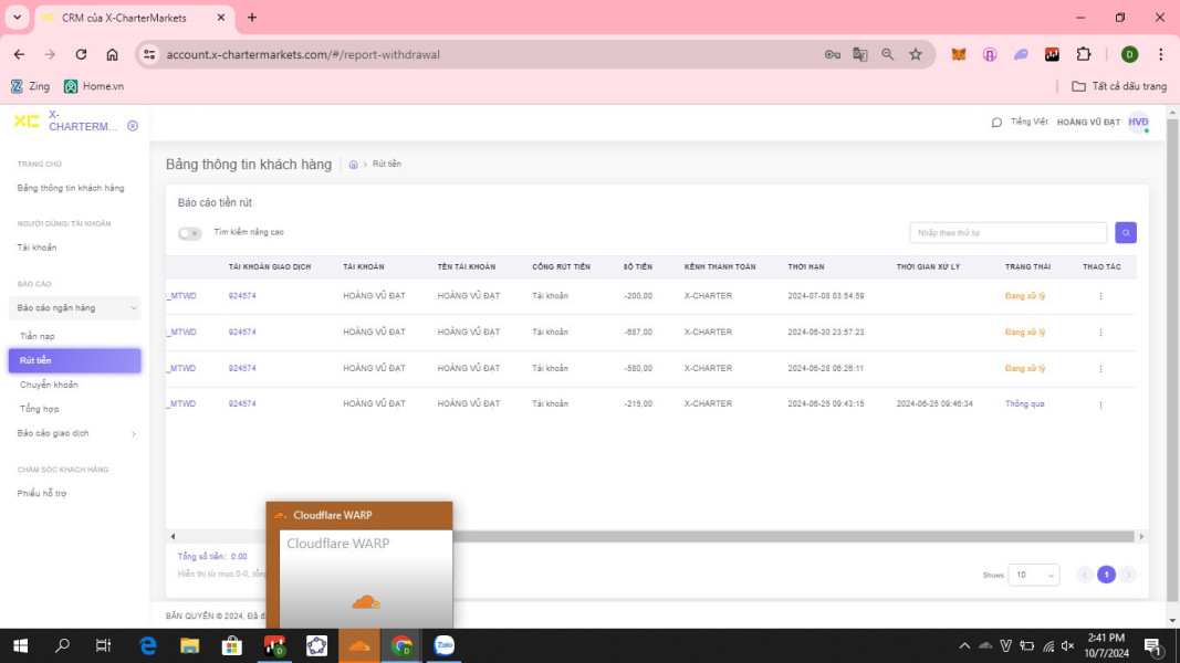 Sàn X Charertmarket không minh bạch