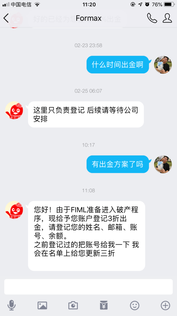 formax外汇不给出金,私自把外汇账户里的金额转到AAAFx International,然后说按照每个月只可出全额的4%,之后又变成禁止出金等待新的付款方案,现在又是私下要求3折出金.